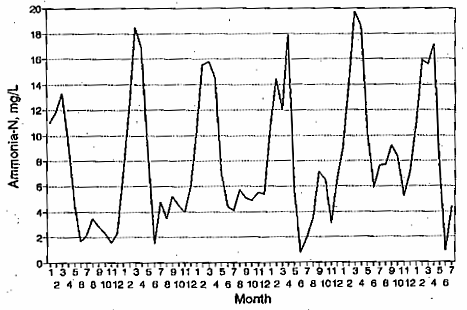Effluent Ammonia Concentration, mg/L 1990-1995
