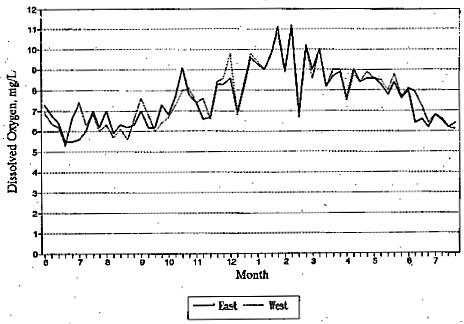 Dissolved Oxygen East and West Pond June 1994 - July 1995